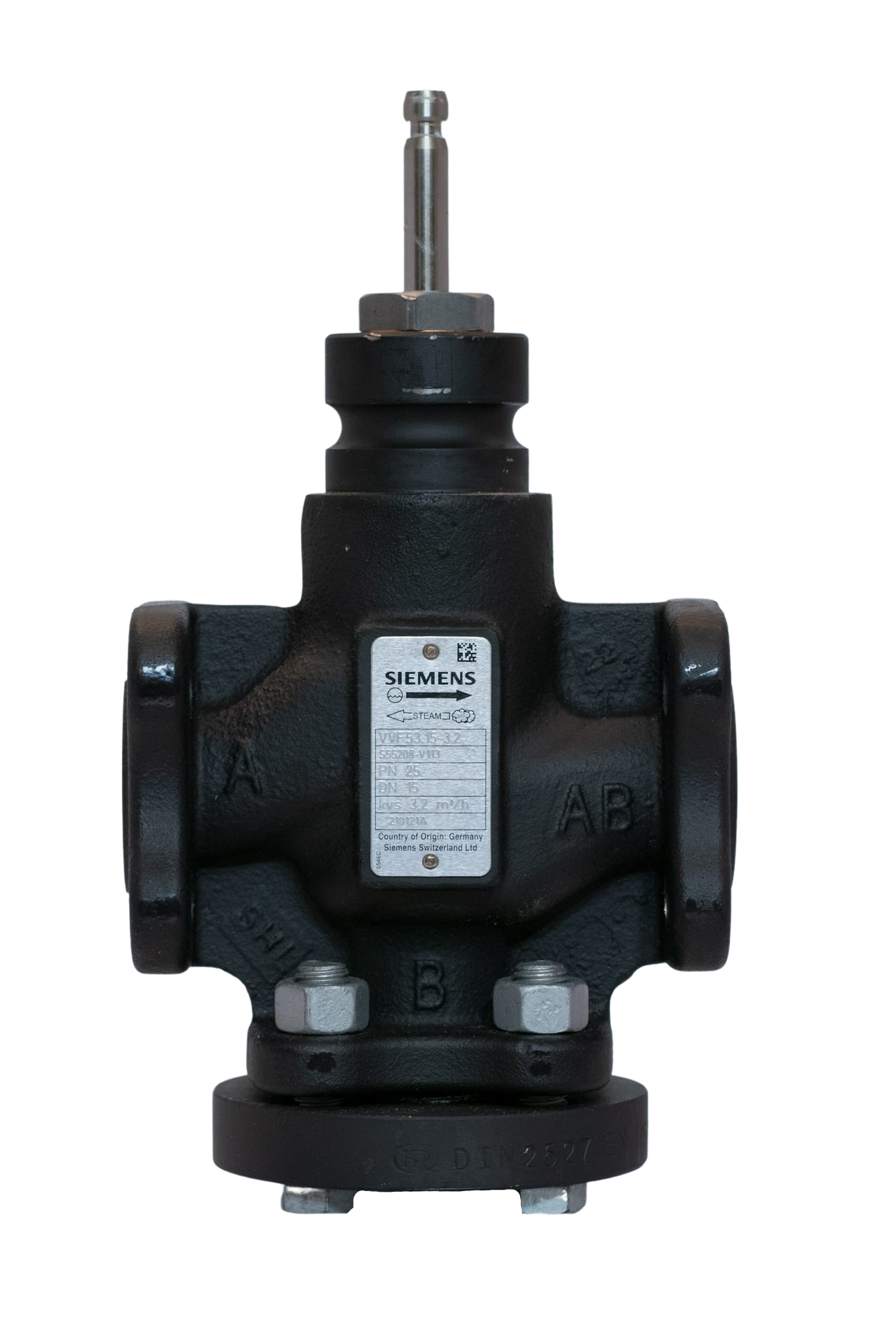 S55208-V113 Siemens VVF53.15-3.2 Kaksitieventtiili, 20 mm, DN15, Kvs=3,2, PN25, laippa